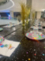 Party themed tablecloth & party table toppers
