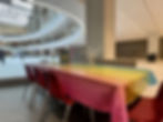 Main table set with place settings and chairs for twelve